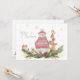 Whimsical Christmas card has the cutest watercolor Polar Bear all dressed up in his cosy grey and red striped sweater and a red hat with white trim and pompom. He's standing amidst holiday greenery, pine cones, red berries and ribbons. A stack of holiday gifts is next to him and there's even a sweet little bird sitting atop of them! Two more birds are checking out the red berries. Gold foil snowflakes are scattered all about and it says Merry Christmas. The reverse side has another cute little bird sitting on a branch of berries. Text reads "May all your holiday wishes come true" and a place for you to personalise it with your name and the year.