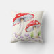 Whimsical Polka Dot Mushrooms Throw Pillow. Cute AI generated red and white watercolor mushrooms with purple stones and little sprigs of greenery. Add an adorable touch of nature to your home to brighten your day and enliven your space.