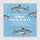 This cute design features a cute pool party water ocean, a magnetic invitation card fridge magnet, a watercolor shark fish sea animal, a wild wildlife nautical marine life, a sharks fish marine grey black, a fun whimsical festive picnic invite, a summer swimming party invitations, a summer fun swimming swim party, a simple cute pool party invitations, a fun unique cool summer invitation.