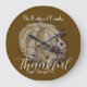 Whimsical Pumpkin Autumnal Floral Thankful Large Clock