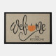 Whimsical Pumpkin Welcome: Welcome guests with a touch of rustic charm and seasonal flair with this personalised minimalist rustic welcome doormat. The design features the word "welcome" in a whimsical minimalist script, with a vibrant orange pumpkin replacing the "o" for a cosy, autumn-inspired twist. This doormat adds a rustic, farmhouse aesthetic, perfect for creating a warm and inviting entrance. Personalise this doormat with your family’s name for a custom, welcoming touch that sets the tone for your home. Ideal for fall décor, this doormat is both stylish and practical, making it a perfect addition to your front porch or entryway.