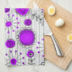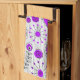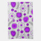 Whimsical purple white hearts and flowers floral tea towel