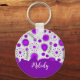 Whimsical purple white hearts flowers floral name key ring