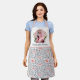 A whimsical pink flamingo dressed in a feathery robe and wearing a tiara crown adorns the upper part of this unique apron design. Text spells out "Queen of the Kitchen". You can edit this text with other wording or personalise it with a name or other text if you desire. A lovely vintage floral pattern covers the lower part of the apron in matching pink and beige. This apron makes a wonderful gift for Mother's Day, birthday, bridal shower or any day!