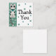 "A charming and whimsical black and white cat doodle on a soft grey-blue background, surrounded by sparkling stars and playful dots. This quirky cat features a black and white striped tail and a cute blue bow, adding a touch of personality and charm. Perfect for cat lovers, this adorable illustration is sure to bring a smile to anyone's face. To the right of the cat, on a white background, the words 'Thank You' are written in a whimsical, font. Ideal for expressing gratitude in a fun, creative way."