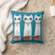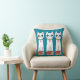 A charming and whimsical white cat doodle on a bright blue background. This quirky cat is standing on a pile of books and is wearing a cute collar with a pink love heart and rosy cheeks, adding a touch of personality and charm. Perfect for cat lovers, this adorable illustration is sure to bring a smile to anyone's face. Back of pillow is a solid plain blue colour.