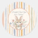Whimsical Rabbit Watercolor Stripe Classic Round Sticker