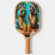Whimsical Raccoons Perched on Rustic Table Pickleball Paddle
