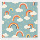 Create a dreamy atmosphere with this charming rainbow and cloud pattern in a soothing retro colour palette. Perfect for nurseries and children's rooms, this design features soft coral rainbows, fluffy white clouds, and delicate gold stars on a calming sage blue background. The modern, minimalist style gives a fresh twist to classic nursery motifs, making it ideal for bedding, wallpaper, or fabric. A gender-neutral design that brings warmth and whimsy to any space.