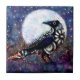 Whimsical Raven Moon Floral Black White Blue Ceramic Tile