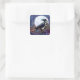 Whimsical Raven Moon Floral Black White Blue Square Sticker
