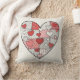 Whimsical Red and Pink Patchwork Heart Collage Art Cushion