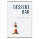 This charming wedding tabletop sign features a whimsical lighthouse illustration with alternating red and white stripes, set against a clean white background. The design includes bold, uppercase text "DESSERT BAR" at the top, followed by a friendly invitation "please take a treat!" in a lighter font, creating an inviting atmosphere. The watercolor art technique adds a soft, handcrafted feel to the scene, evoking nostalgia and simplicity. Perfect for guiding guests to a sweet treat station, this sign combines playful aesthetics with functional typography, making it ideal for casual celebrations.