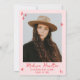 Celebrate your graduate in style with this trendy graduation party invitation featuring "Cheers to the Grad!" in a whimsical red script! Set against a light pink background, this fun and festive design is decorated with hand-drawn illustrations of a graduation cap, diploma, stack of champagne glasses, disco ball, and more—perfect for a lively and celebratory vibe. The front is fully customisable, allowing you to add the graduation year, graduate’s name, and party details. The back showcases a personalised senior photo with their name, school, and graduation year displayed below. Ideal for high school and college graduates, this stylish and modern grad party invite is a must-have for an unforgettable celebration. Personalise yours today!