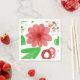 Whimsical Red Flowers Green Leaves On White Art Napkin