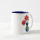 Whimsical Red Flowers in Blue Vase Two-Tone Coffee Mug