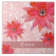 Whimsical Red Flowers Swirly Leaves Add Name Pink Ceramic Tile