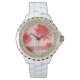 Whimsical Red Flowers Swirly Leaves Pink Watch. Personalise this elegant Watch with your name.