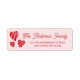 Cute Valentine's Day return address labels featuring whimsical red hearts with pink doodle lines.