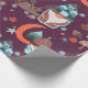 Whimsical Garden Fairy Gnome Christmas wrapping paper. Featuring Crescent Moons, Stars and Mushrooms in Rich Burgundy Red, Orange, Blue Colors. It's an unusual pattern making your special gifts stand out under the tree.
