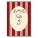 Whimsical Red Pink Striped Wedding Table Number