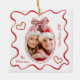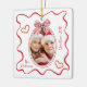 Whimsical Red Wavy Frame Bow Photo Christmas Ceramic Ornament