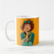 A vibrant illustration of a dreamy redheaded girl with bright blue eyes, wearing teal and polka dot attire, holding a newspaper. Set against a bold orange background, her curious gaze and playful style evoke a retro-modern charm. Perfect for prints, accessories, and quirky designs.