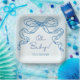 Whimsical Retro Blue Hand Drawn Bow Baby Shower Paper Plate