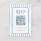 An RSVP enclosure card to match our Whimsical Retro Blue Stripes Wedding collection. This design features a navy blue hand-drawn frame against a light blue striped background. There is a QR code to RSVP online & see other details on your wedding website. The back of the design features your custom photo to perfectly match the front. View the collection linked on this page for matching items. Feel free to message me with any questions, I'll be happy to help!