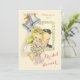 Whimsical retro bridal shower invitation template with a cute, elegant, vintage, antique, cartoon illustration of a happy smiling blonde hair bride and black hair groom from the 1940s / 1950s. The beautiful, glamourous bride has a long flowing traditional, classic white billowing veil with flowers, and is holding a pretty wedding bouquet with lovely pink roses and white spring daisies with pink ribbons and bows. There is a chic white daisy frame with green leaves, and elegant silver wedding bells with feminine pink flowers adorning them. The background is a classy soft, delicate, vintage tan colour and the bridal shower font is an ornate, fancy, swirly, curly, sophisticated, cursive script. On the reverse of these romantic, fun, girly, adorable, custom, personalised invites is a smaller image of the bride and groom illustration and text for you to personalise with your details. These stylish, personalisable, old fashioned, trendy, fashionable, original and unique vintage invites templates for bridal showers are printed / decorated on both sides / have double sided printing. All of the text can be easily customised to meet your needs and you can change the font style, colour and size of font if you desire. Perfect for spring and summer events, or any time of year. If you need any assistance customising your product please contact me through my store and I will be happy to help. Image sourced from in Pastel on Flickr. https://creativecommons.org/licenses/by/2.0/ PLEASE NOTE: All products on Zazzle have flat printed images.