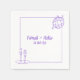 Put your names on it, then hit the dance floor. This customisable wedding napkin brings a retro twist to your big day with a minimalist disco ball, sparkling accents, and two chic champagne glasses. In a bold lilac purple line art style, it’s perfect for receptions, bachelorette parties, or any celebration with serious style. The simple frame keeps things modern, while the playful doodles set the tone for fun. Add your names and date for a personal touch that shines as bright as the disco ball.
