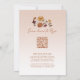 Whimsical Retro Boho Floral Monogram QR Code Wedding Invitation... A whimsical floral bouquet in a retro bohemian style sits in a terracotta vase overlaid with your wedding invitation text. The design displays the bride's and groom's monogram initials and invitation details in modern calligraphy script and elegant serif and sans serif typography on a chic desert sand gradient background. The back of the invitation includes the QR code of your wedding website so guests can RSVP online while also viewing important info about about your upcoming nuptials. All text, except the calligraphy script, can be easily revised on the personalisation template.