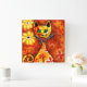 Whimsical Retro Kitty Cat Abstract Art Orange Square Wall Clock