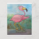 Whimsical Roller Skating Roller Blading Flamingo Postcard