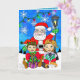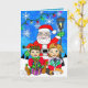 Whimsical Elves and Santa. Cute hand drawn festive Santa Claus and Elves holiday card that can be customised by adding your names and own holiday message inside the card in the personalise area.