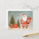 This whimsical illustration of Santa Claus with Christmas trees and wrapped gifts is printed on a postcard. AI assisted graphic purchased with commercial use. Artwork: DelightfulDigiArt
