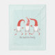 Perfect for the holidays, this cosy fleece blanket design features three whimsical Scandinavian gnomes skipping along in this delightful Christmas design. Modern script text spells out the family name that you can personalise with your desired name or other text. The background is a trendy mint green which contrasts well with the red in the gnome's tall pointed hats and striped stockings. A thin white lined square frame is repeated around the gnomes to frame them in style. In modern day Scandinavia, nisse or tomte is associated with the Christmas holidays, and often perceived as a Scandinavian version of Santa Clause. They are thought to bring good luck to the household.