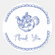 This bridal shower thank you sticker is based on the popular hand-drawn trend that features French or Italian style food and beverages in a whimsical, doodle, scribble style. This design is ideal for a bridal brunch. It features hand drawn tea pot in a loose, scribble style and a circular scalloped frame.