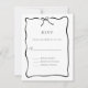 A simple handwritten script modern minimalist black and white typography wedding RSVP enclosure card, framed with a wavy ribbon frame with bow in a hand drawn style. Informal whimsical coquette style. Available in print, as a digital download, or both.