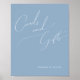 Introducing our stunning whimsical script | dusty blue cards and gifts sign perfect for your simple modern boho spring celebration. Our elegant design includes a vibrant bright, pastel colour palette with a vintage chic calligraphy script. Whether you prefer a minimalist or classic style, our unique editable product offers luxury and elegance, perfect for creating a classy yet romantic touch sure to make your special day unforgettable. Contact us with any questions about the design, and let us help you make the wedding of your dreams.