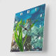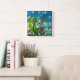 10.75” x 10.75” acrylic wall clock with an image of a watercolor painting of a whimsical seahorse in sea plants.