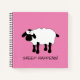 Cute, whimsical sheep notebook with "SHEEP HAPPENS!" caption. Pink background. Several other colours available.