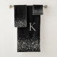 Whimsical Silver Glitter on Black Monogram Bath Towel Set