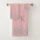 Whimsical Silver Glitter on Pink Blush Monogram Bath Towel Set