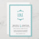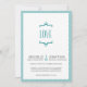 Simple and sweet vintage-style turquoise wedding invitation has a whimsical "LOVE" graphic and fun pin-striped border. Matching wedding collection:
