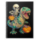 Whimsical Skeleton Riding Mummy T-Rex Halloween Notebook