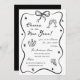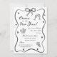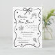 Whimsical Hand Drawn Doodle Illustrations, New Year's Eve Party Invitation. Black typography, wavy line bow frame border and sketched illustration accents.