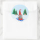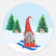 Whimsical Skiing Christmas Gnome Scene Classic Round Sticker