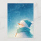 Celebrate the magic of winter with this heartwarming postcard. The artwork features an adorable, smiling snowman wearing a cozy teal knit hat with a fluffy white pom-pom and a matching teal scarf. Captured in a profile view, the snowman gazes upward at a breathtaking night sky filled with shimmering, multi-colored stars and soft falling snow. The deep indigo blue background creates a beautiful contrast with the soft white textures and warm orange carrot nose. This postcard is a perfect choice for sending holiday cheer, winter birthday wishes, or a cozy seasonal greeting to friends and family.