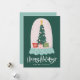 Festive and whimsical holiday card featuring a cute snow globe with a Christmas tree and red, pink and green Christmas presents. "Happy Holidays" in displayed below in a white hand-lettered font with a dark green background. Personalize the front of the card by adding your name or custom text. The non-photo Christmas card reverses to feature your custom message and names in white text with an aqua background. Designed to coordinate with our Whimsical Snow Globe Christmas card collection.
